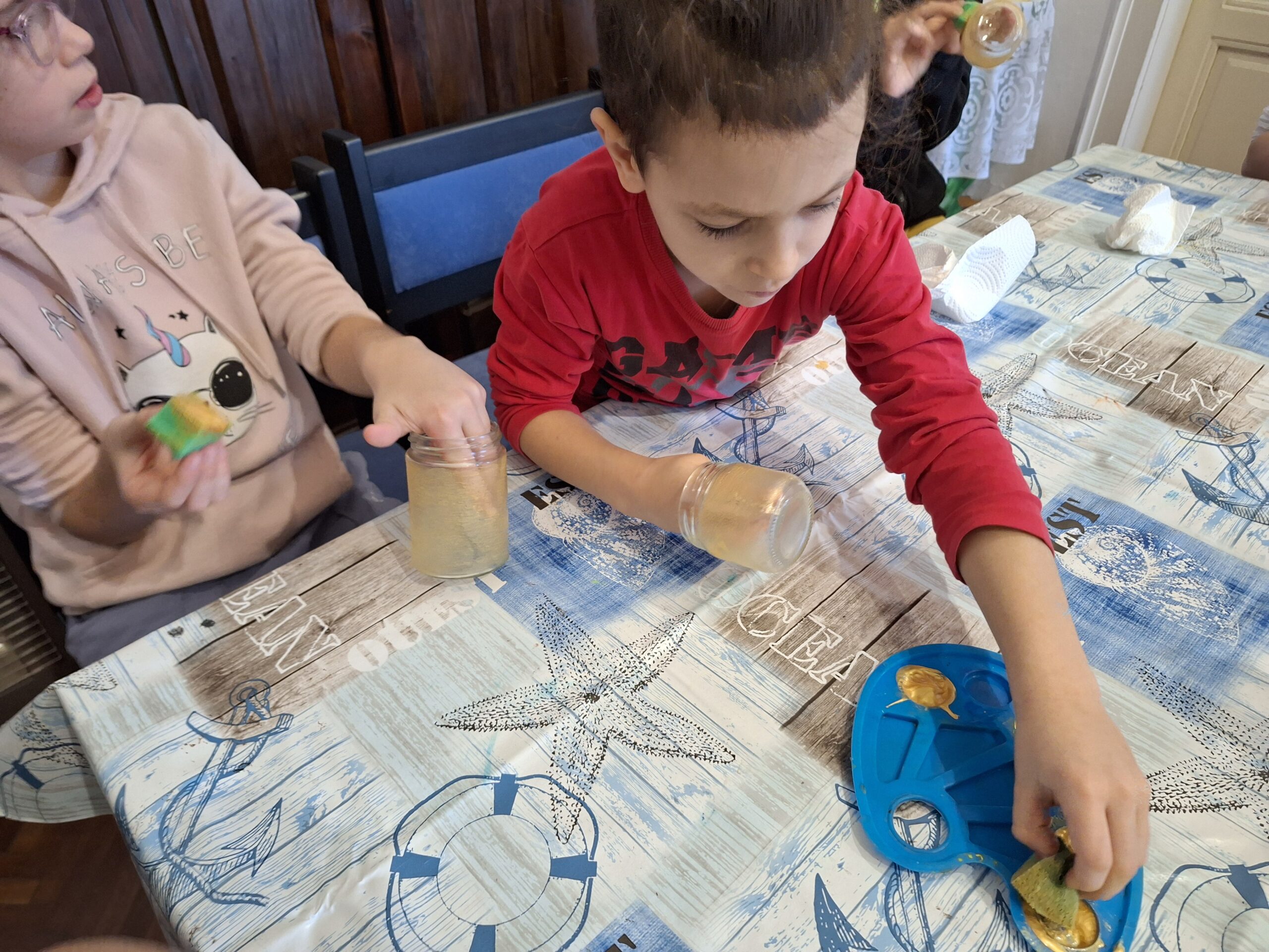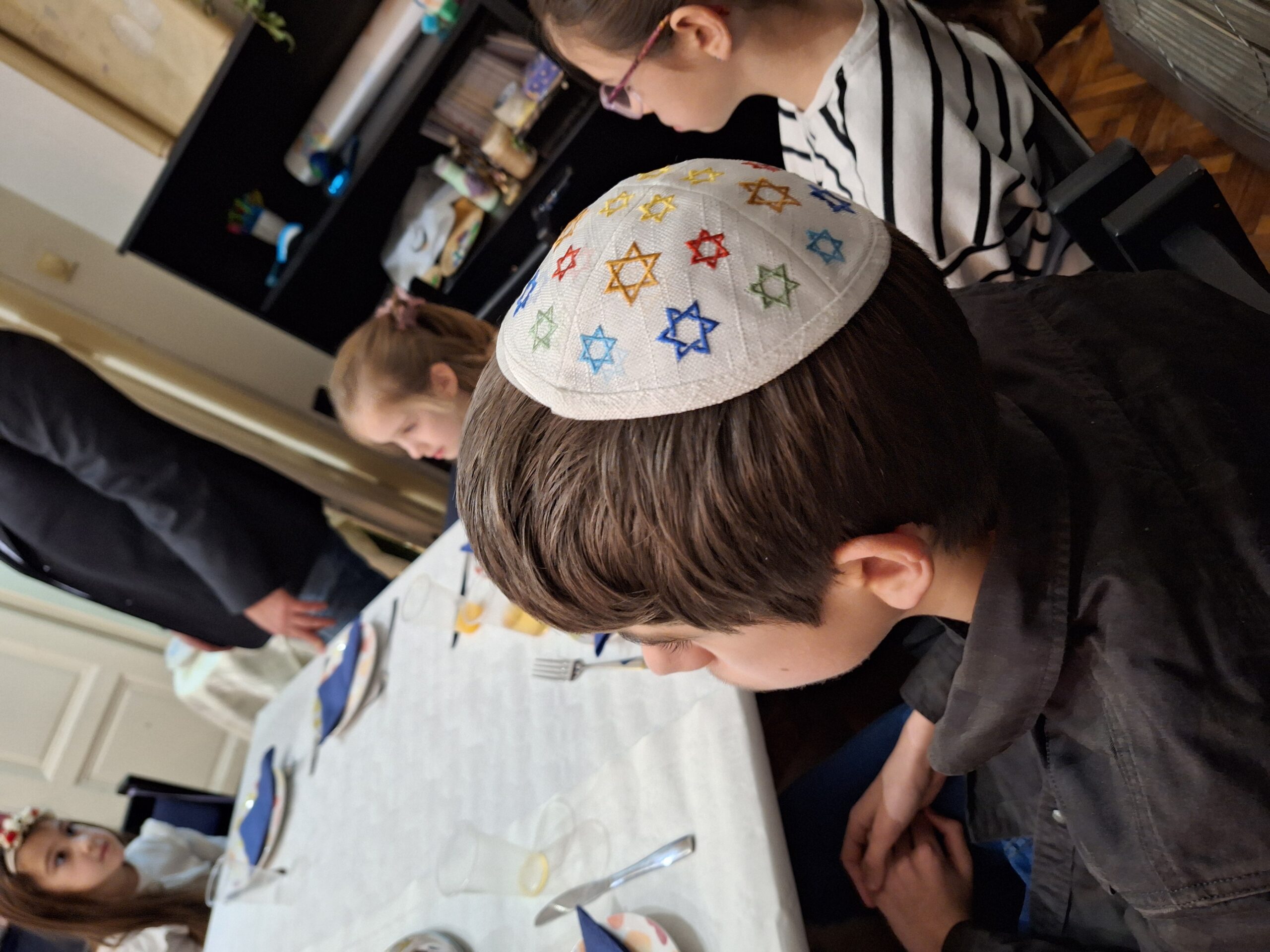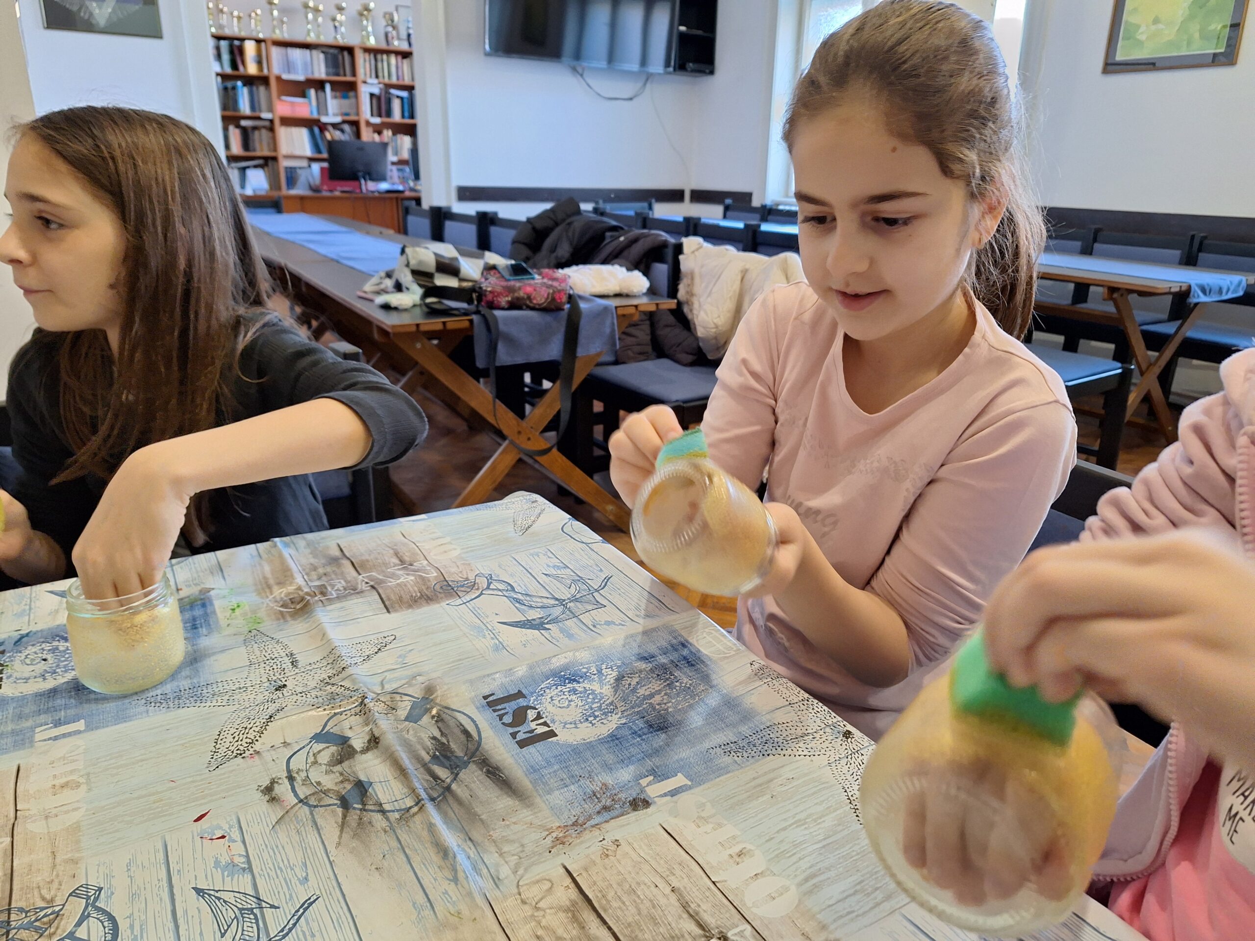Poslednje dve radionice bile su pravi izazov jer je tema bila praznik Hanuka. Prvo smo se podsetili priče o Judi Makabejcu i čudu koje se dogodilo u Hramu, a zbog kojeg i dan danas palimo svećice i jedemo krofne i latkes. Nakon toga su deca zasukala rukave i veoma posvećeno se prepustila pravljenju hanukije, uloživši veliki trud da što lepše izgleda. Rezultat je fantastičan!