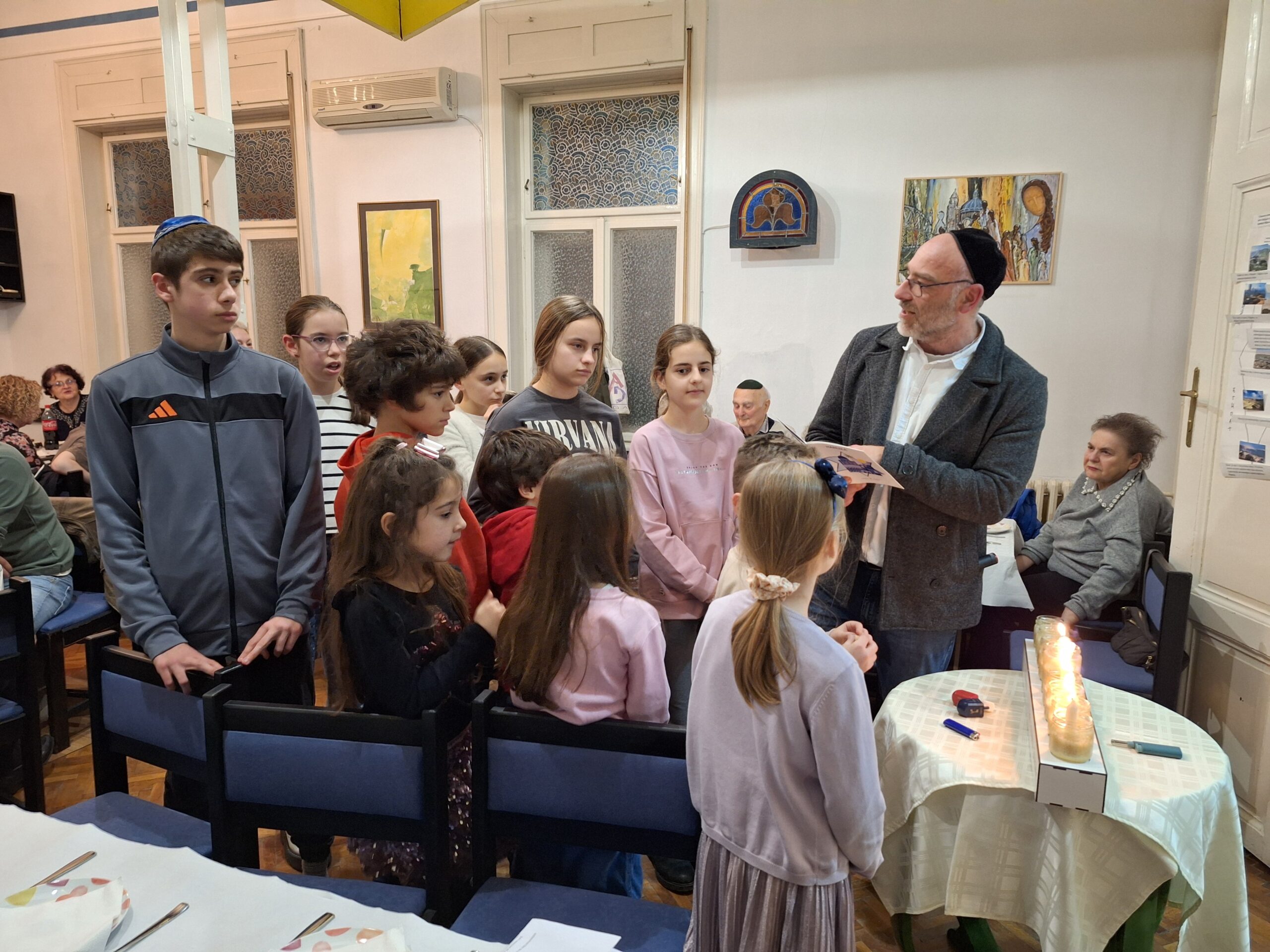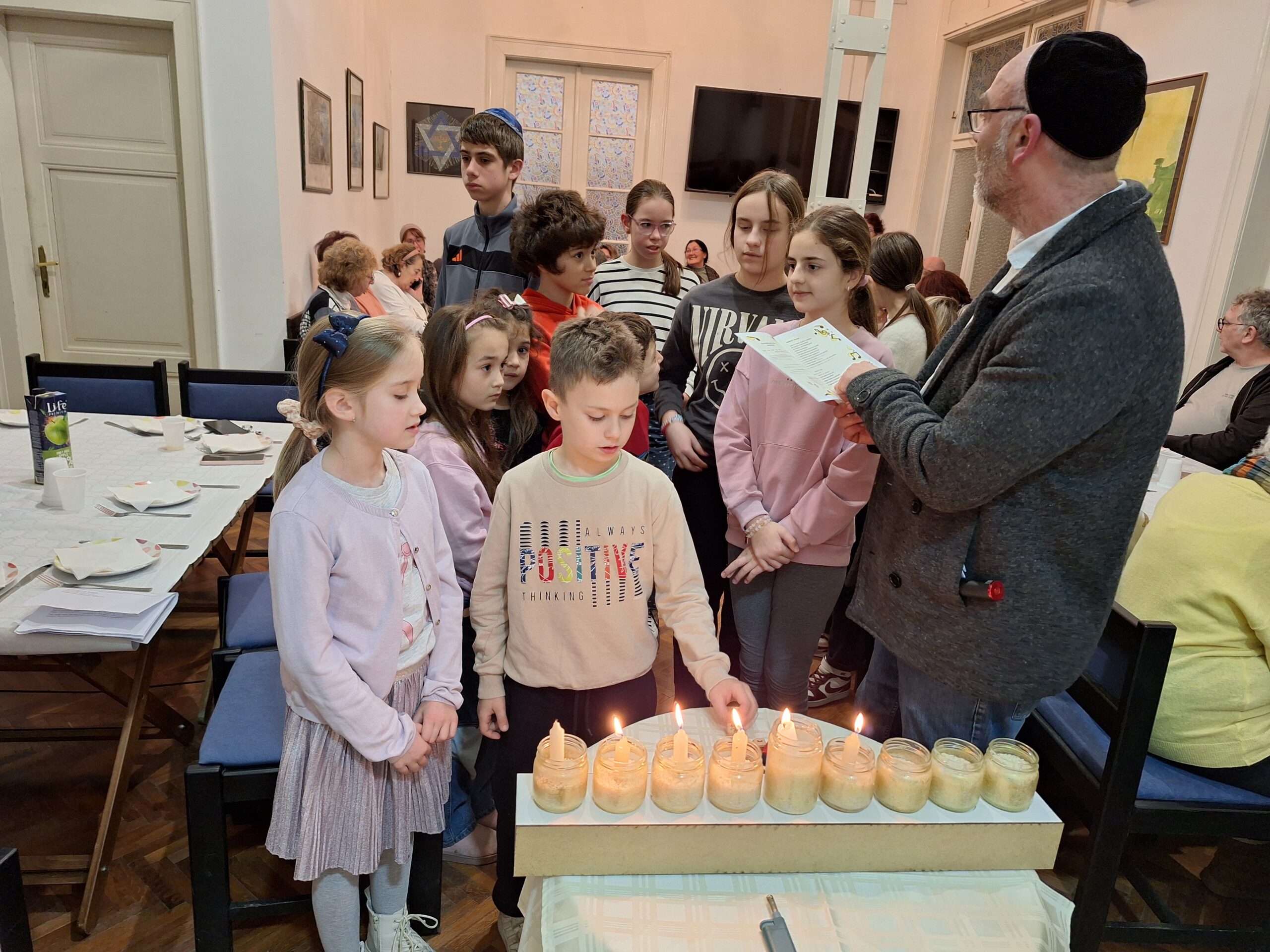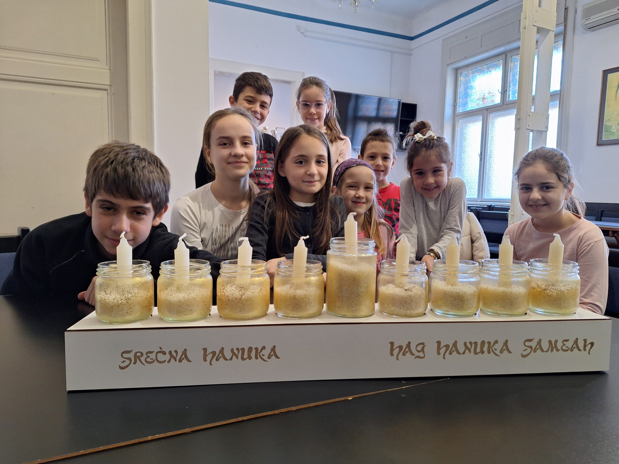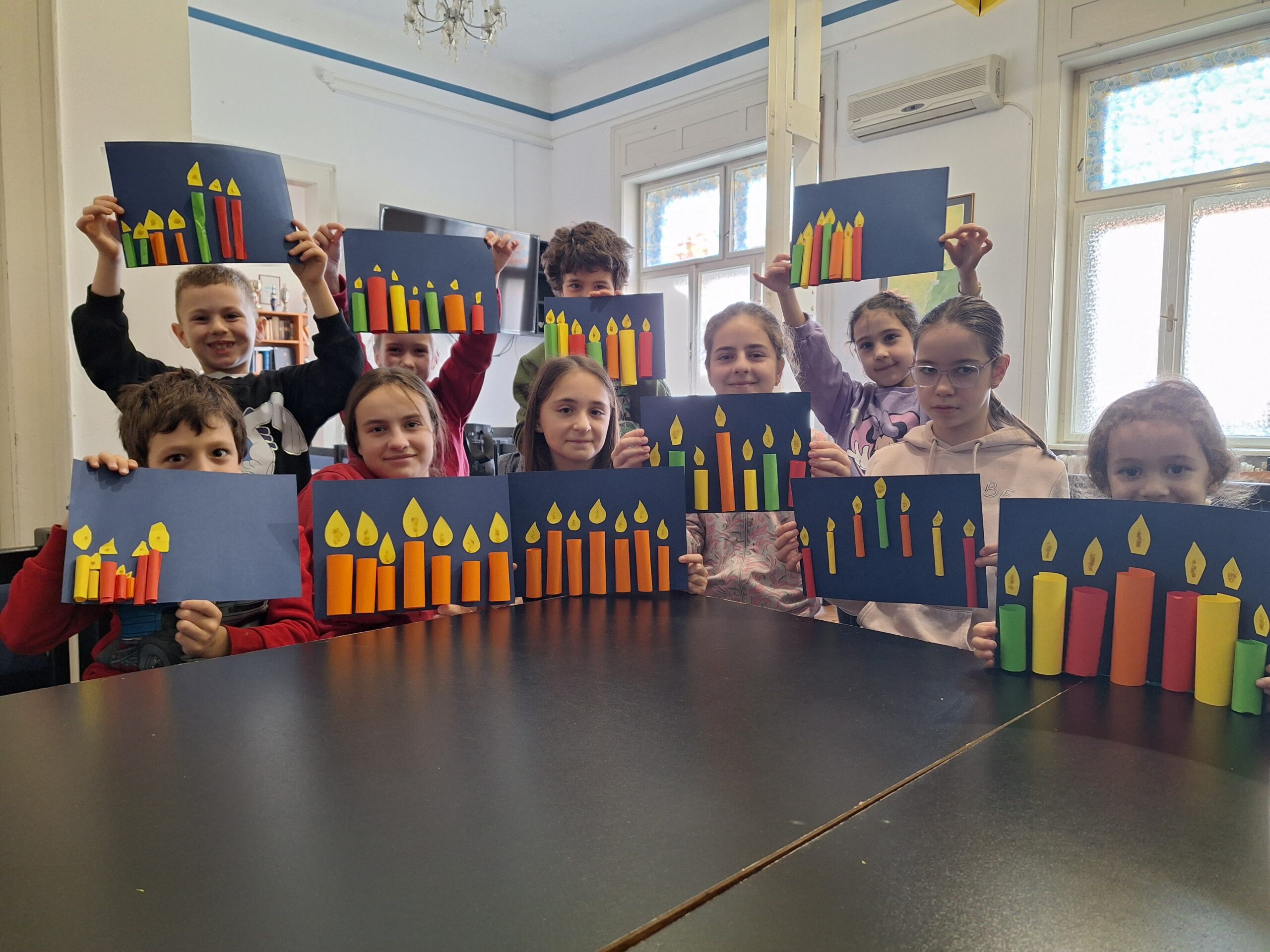 Povodom praznika Hanuka, vredne ručice naših najmlađih članova, napravile su hanukiju, kako bi svi zajedno palili svećice. Uz igru i pesmu, prisetili su se običaja i simbola koji obeležavaju ovaj praznik. Nije izostalo ni uživanje u slatkim ukusima tradicionalnih krofni.
