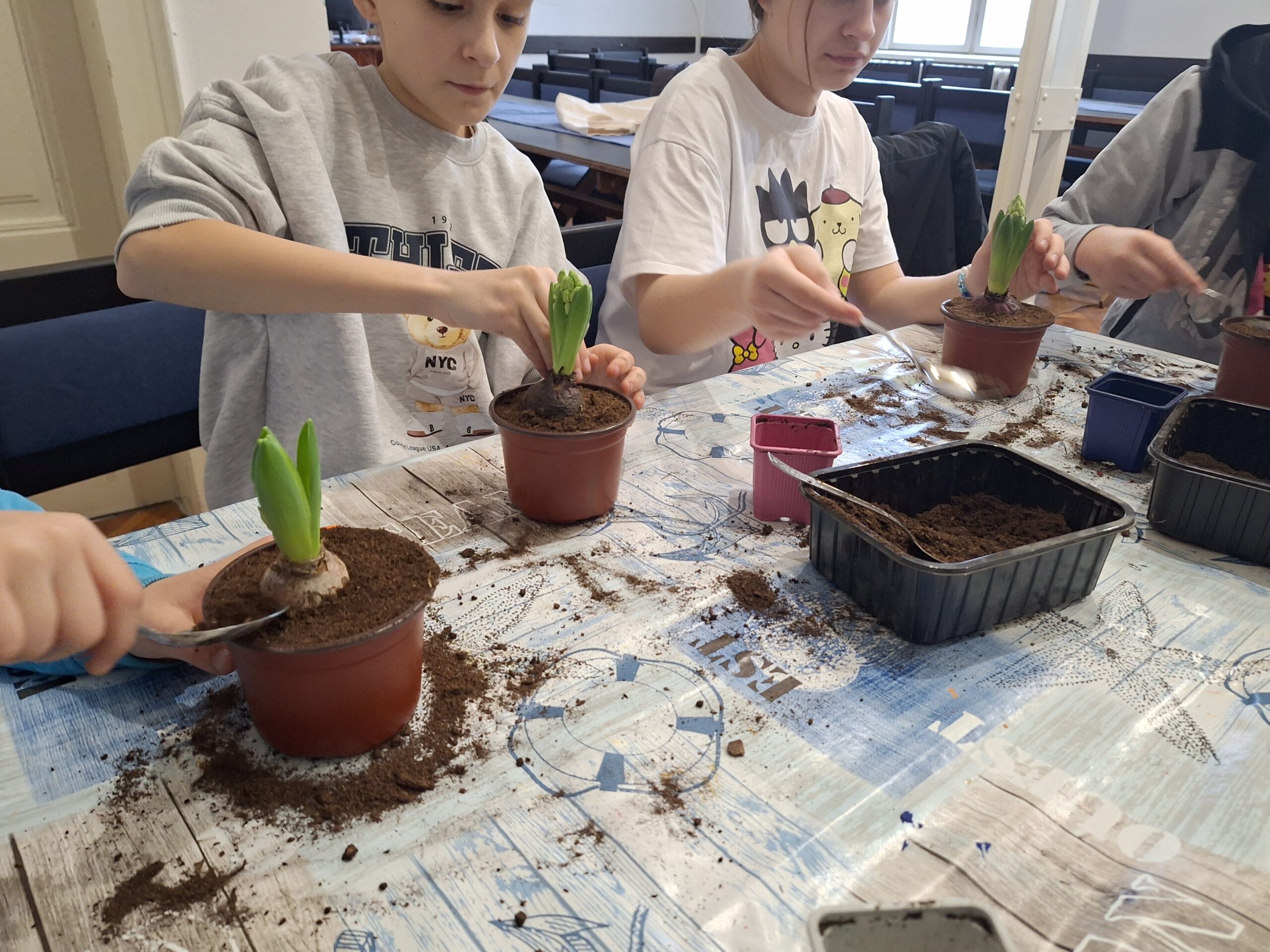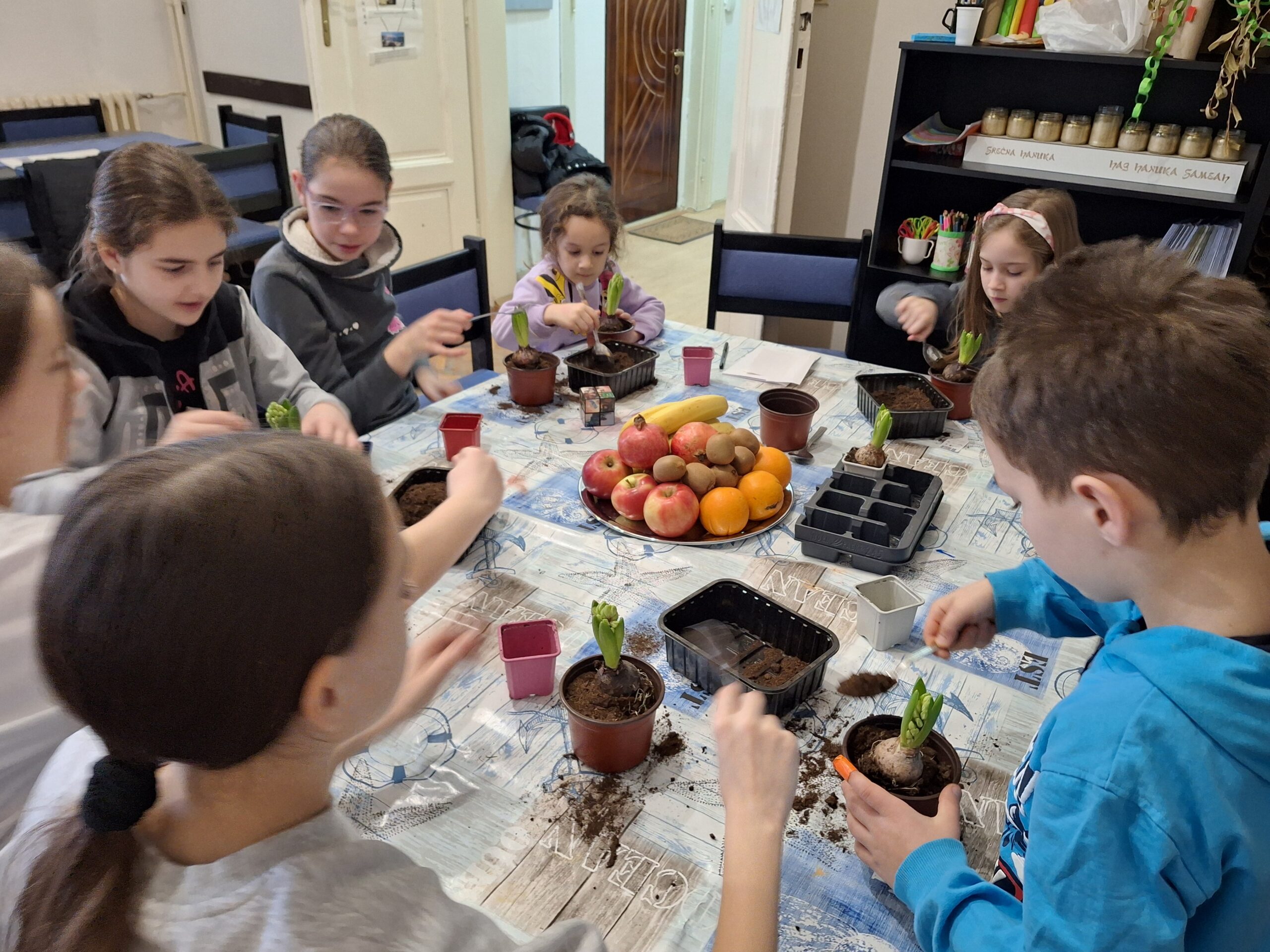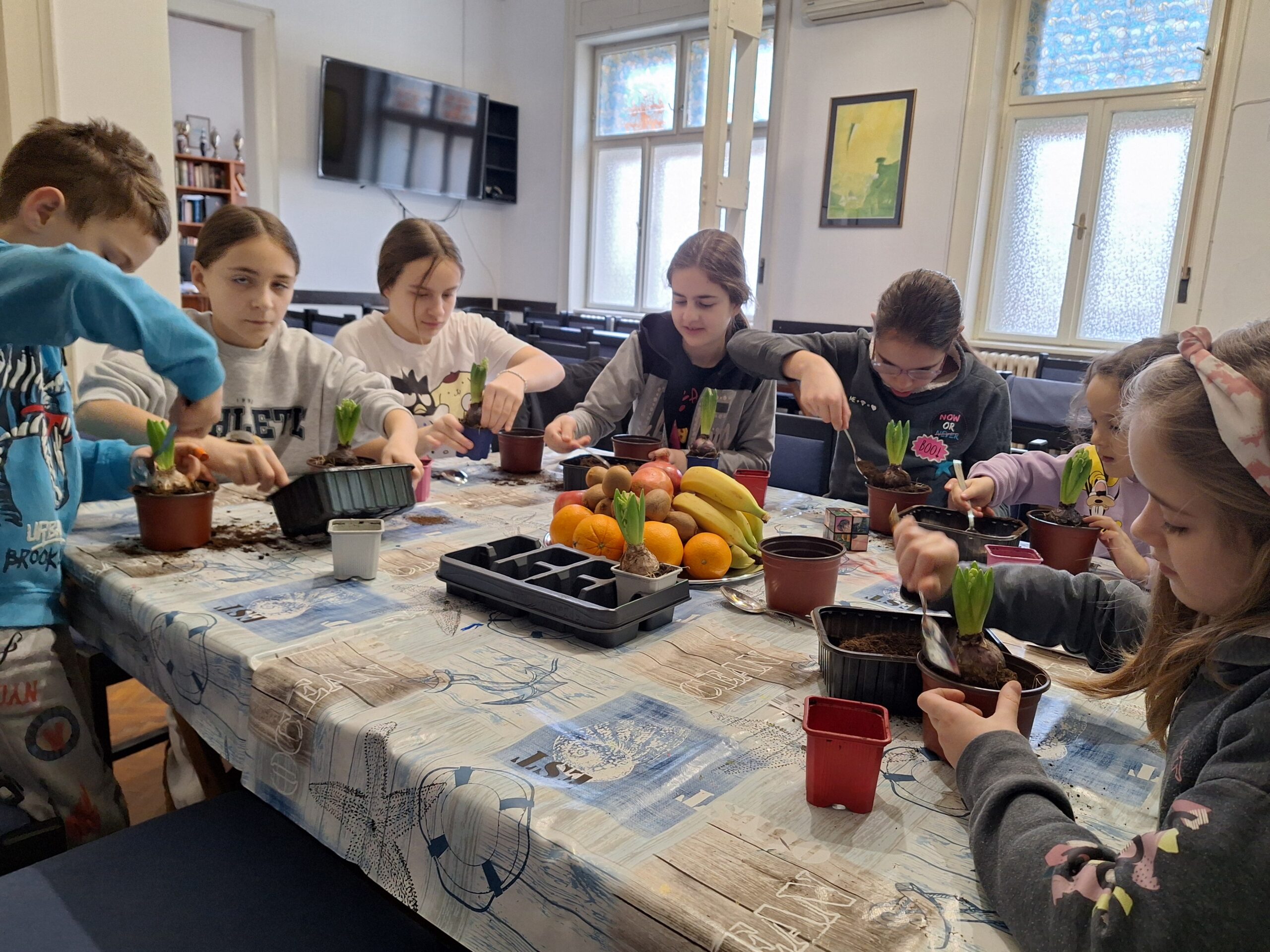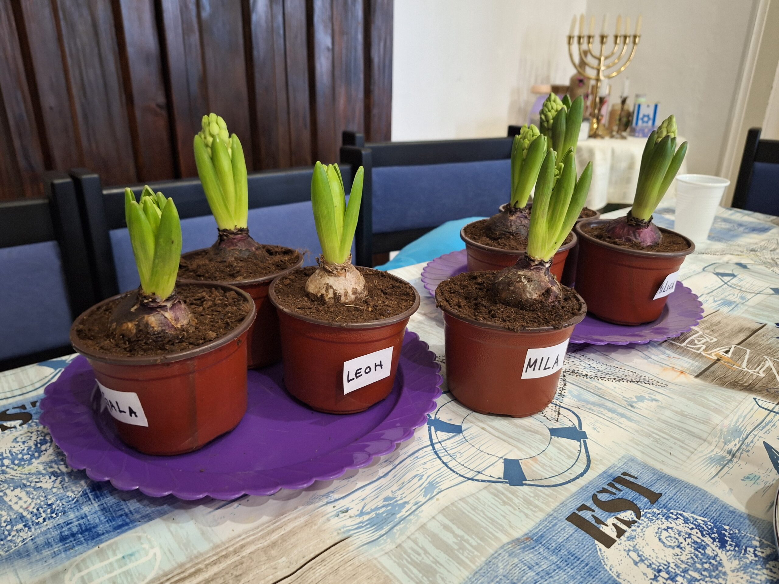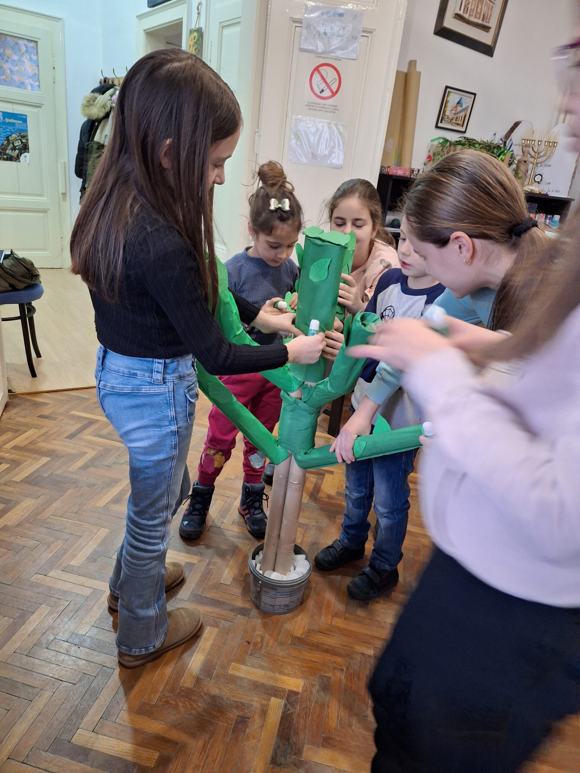 Nakon zimskog raspusta nastavljamo sa druženjem. Na prvoj radionici radili smo na temu predstojećeg praznika Tu Bišvat – Nova godina drveća. Pričali smo kako se praznik obeležava, kako grupišemo voće i koja je simbolika svake grupe. Svako dete je potom posadilo malo drvo u saksiju i dobilo zadatak da zaliva i neguje svoju biljku. Kada je “posao” obavljen, prešli su na uživanje u raznim ukusima voća.