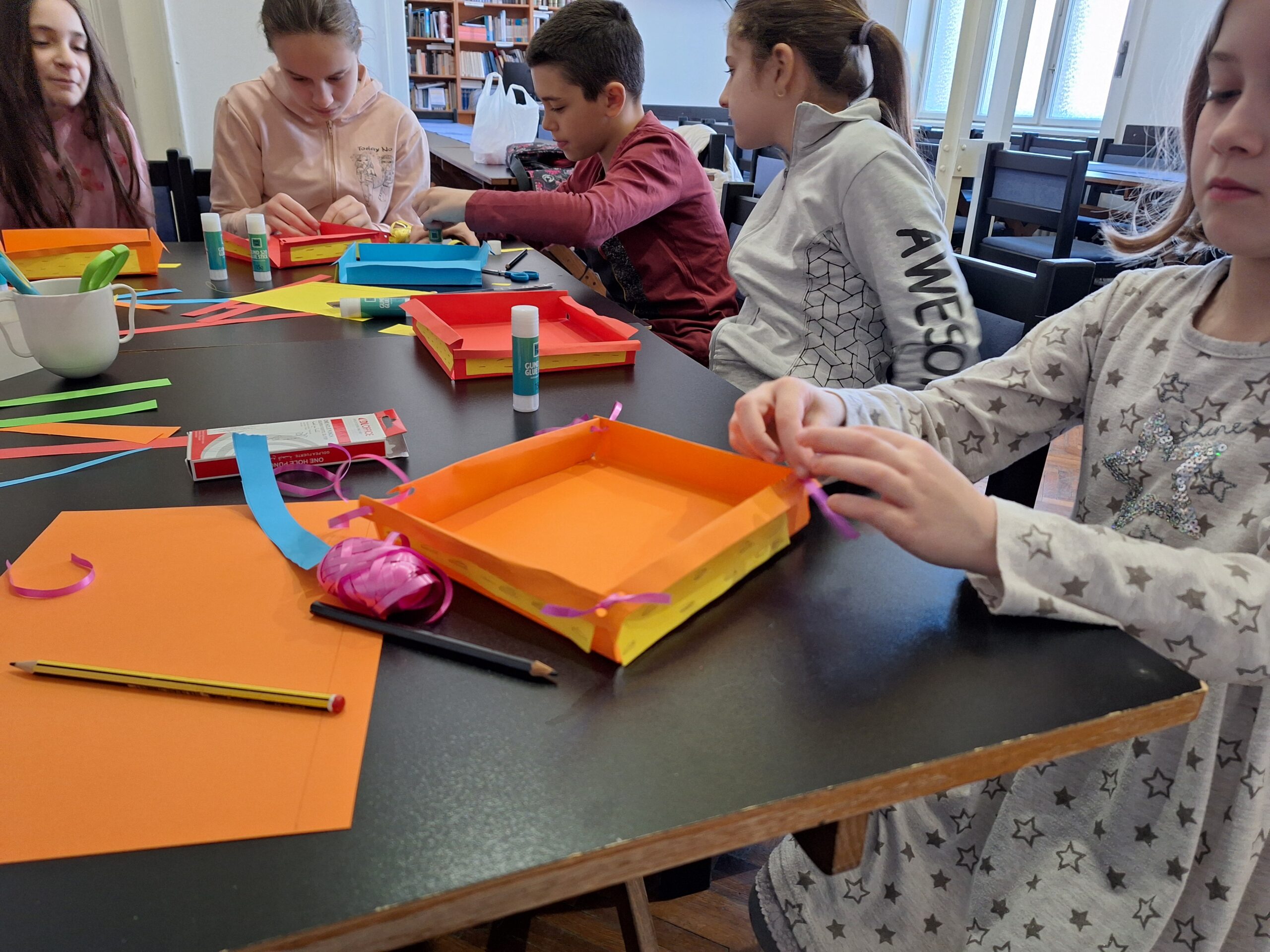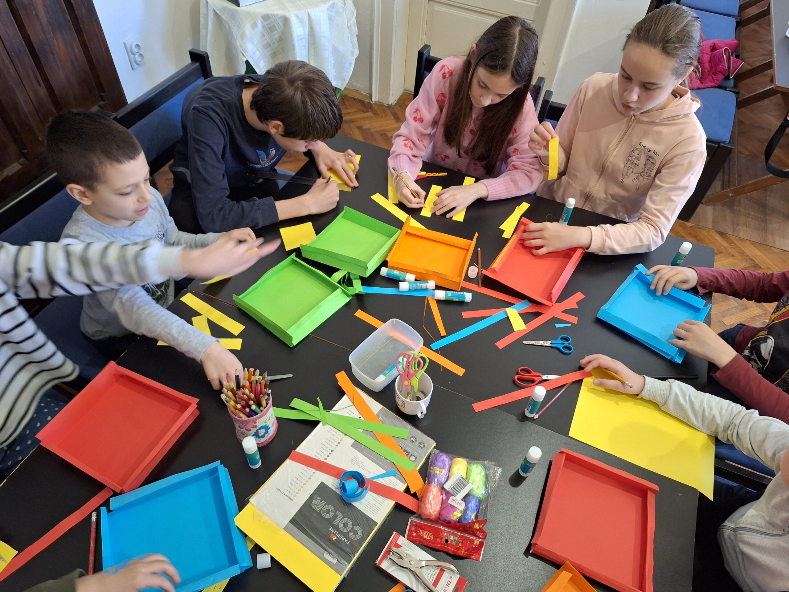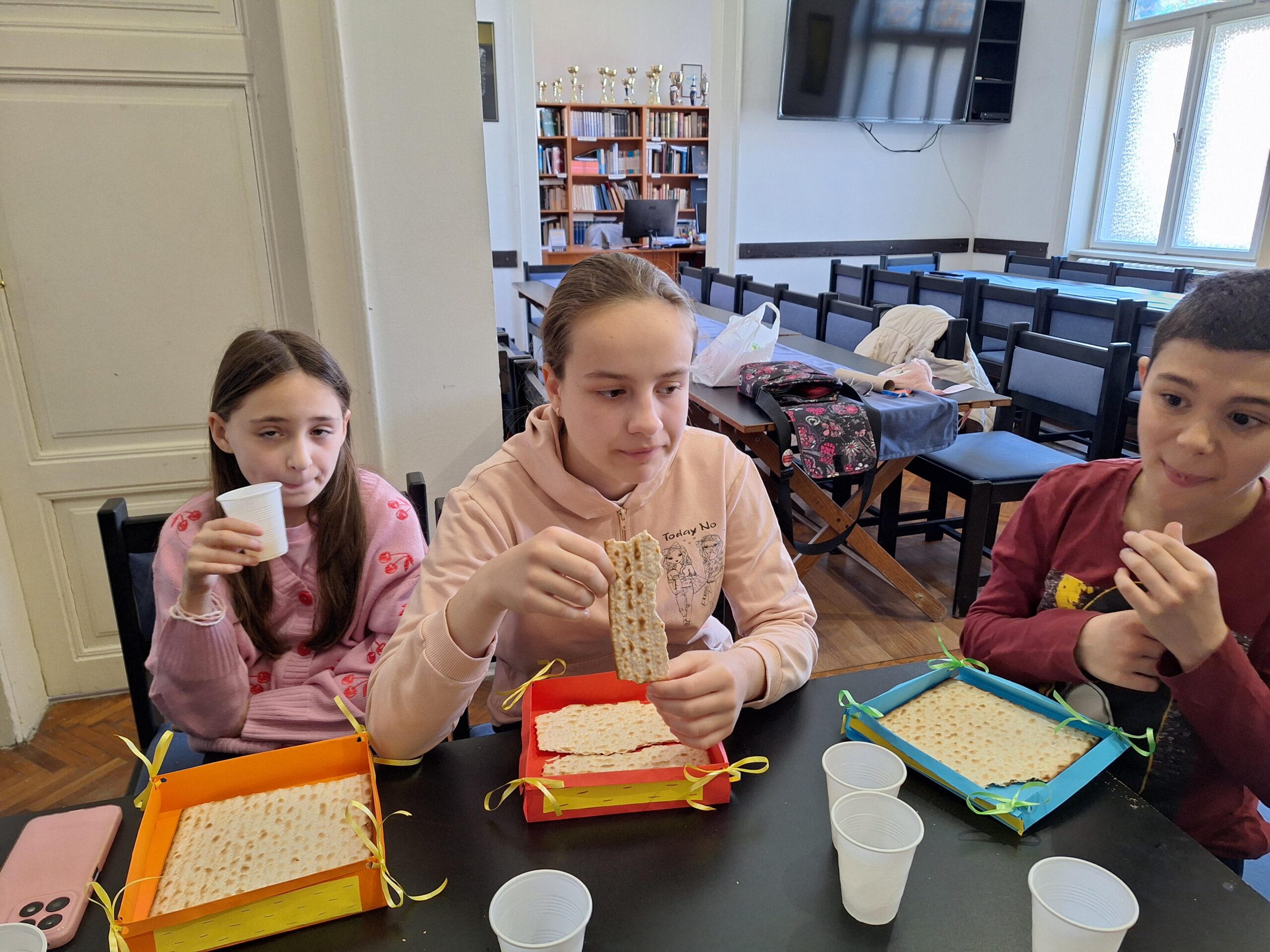 Nakon što smo ponovili priču o Mojsijevom izbavljenju Jevreja iz egipatskog ropstva i običajima za Seder veče i ostale dane Pesaha, deca su se “bacila” na posao i ovom prilikom pravila torbice za afikoman. Svi smo se lepo zabavili i sa nestrpljenjem čekali početak praznika.