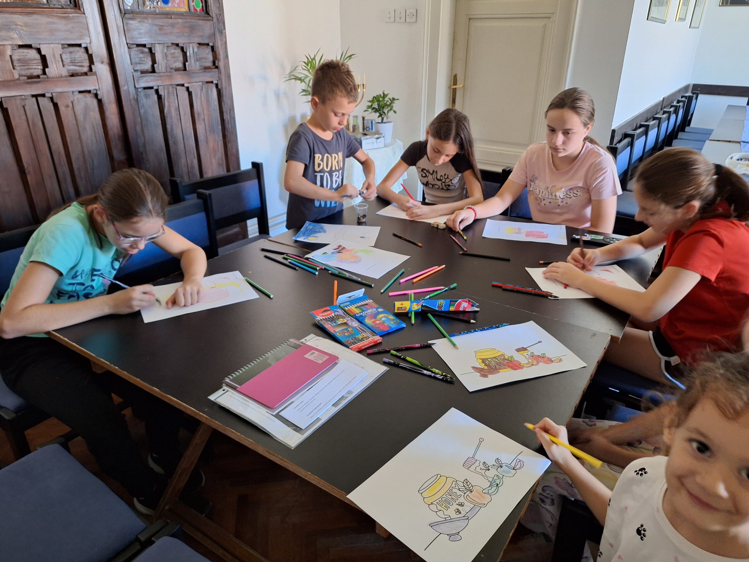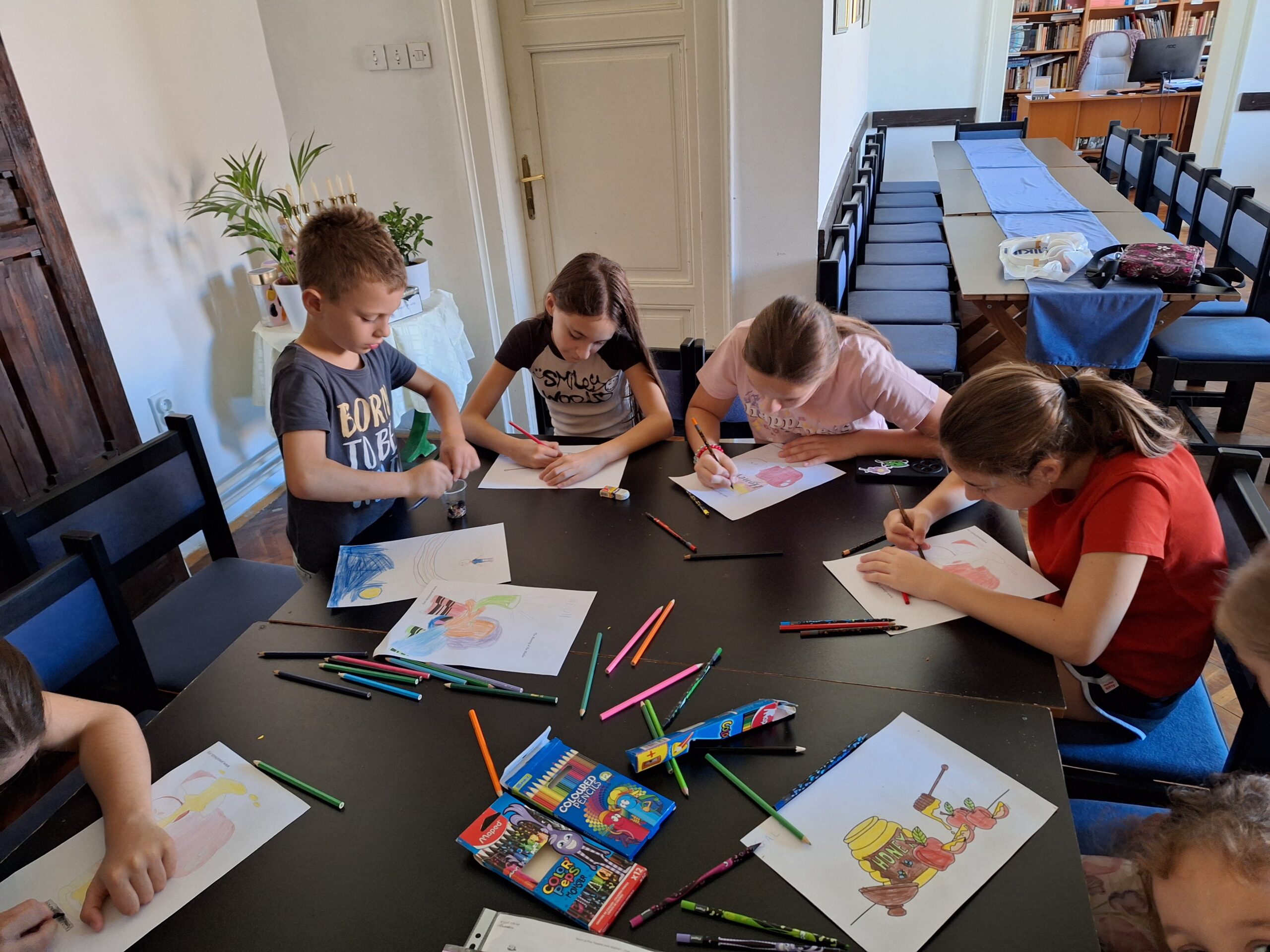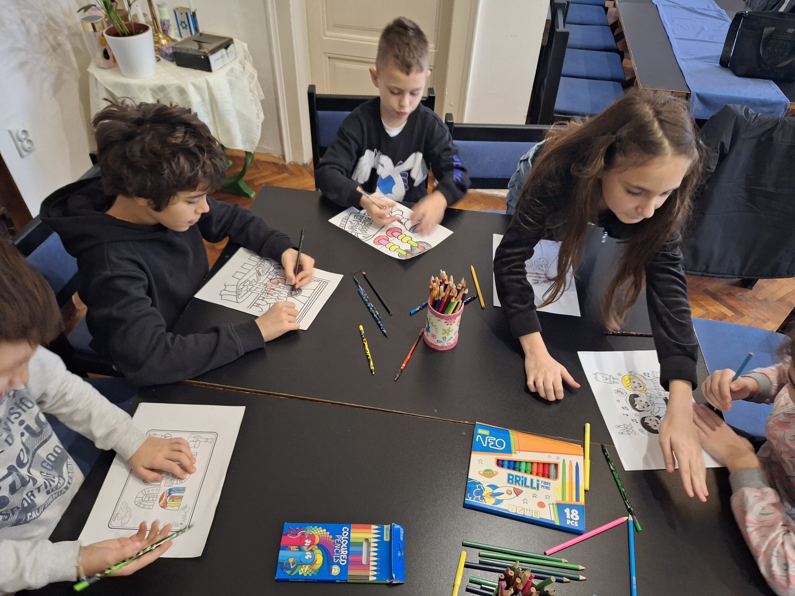 Nakon letnje pauze nastavlajmo sa druženjem i učenjem. Tema prve radionice bio je praznik Roš Hašana, kada smo ponovili običaje i simboliku u okrugloj hali koja se umače u med, određenoj vrsti hrane koja se jede za praznik, bacanju mrvica u reku i naučili molitve koje se izgovaraju kada počinje seder veče paljenjem sveća, izgovaranjem kiduša i blagoslovom nad halom. Deca su potom ilustrovala ono na šta njih asocira kada se spomene praznik Roš Hašana.