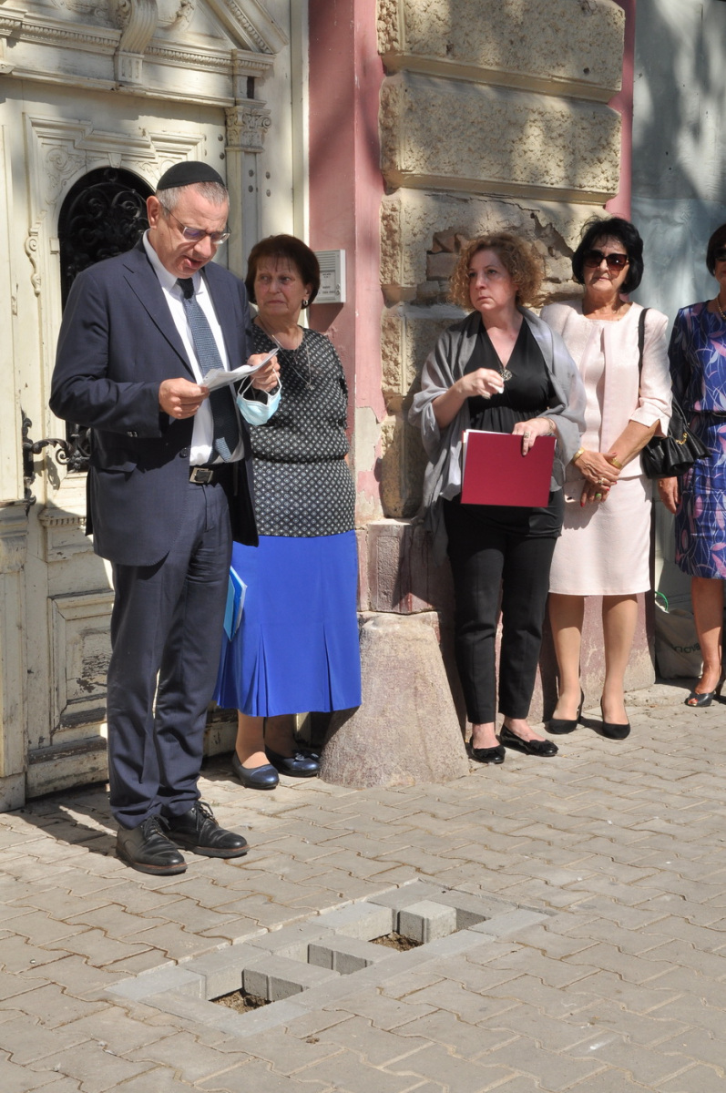 Prisutnima se najpre obratila predsednica JO Zrenjanina, Ljiljana Popov, a potom i gradonačelnik Zrenjanina, Simo Salapura, nakon čega su spomenik otkrile zamenica ambasadora Izraela i predsednica Jevrejske optine Zrenjanin. Vrhovni Rabin Srbije Isak Asiel, obavio je obred. Pristupilo se polaganju venaca, a potom su se prisutni uputili ka Narodnom muzeju Zrenjanin, gde je otvarena izložba o poslednjem zrenjaninskom rabinu Hermanu Helfgotu.
