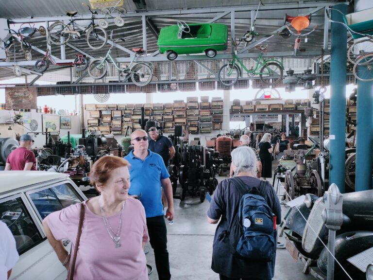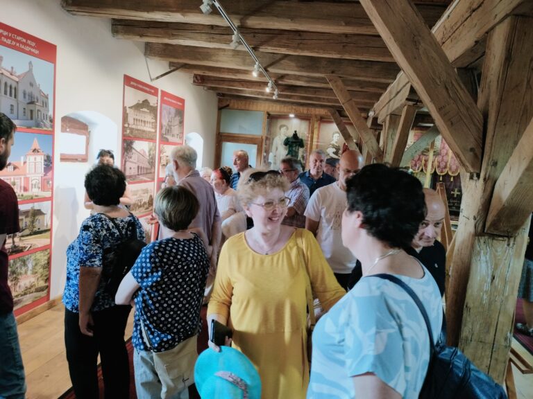 Za subotu je bio predviđen bogat program. Organizovanim prevozom gosti su najpre išli u obilazak dva muzeja u Novom Miloševu. Stalna etno postavka Zavičajnog muzeja „Kotarka“ izložena je u nekadašnjoj kotarci i žitnom magacinu, koji čine ambijentalnu celinu nekadašnjeg dvorca grofovske porodice Koračonji, gde nam je upriličen i kratkometražni fili o porodici Karačonji. Gosti su mogli da uživaju u raznolikom nameštaju, odeći i oruđu, svemu onome što se koristilo u svakodnevnom životu seljana. Potom je usledio obilazak muzeja „Žeravica“, čiji eksponati predstavljaju jednu izuzetno bogatu kolekciju parnih mašina, traktora, priključno poljoprivrednih mašina, alata i predmeta koji oslikavaju nekadašnji način života paora, ali i novomiloševačkih veleposednika. Na opšte oduševljenje posetilaca, bio je obilazak mini muzeja posvećenog novomiloševačkom Džejmsu Bondu – Dušku Popovu, gde su izložene fotografije, pisma, pisaća mašina i mnogi drugi predmeti koje je koristio poznati dvostruki tajni agent. U Novom Bečeju obišli smo spomen obeležje „Kamen spoticanja“ postavljeno septembra 2021. godine ispred Šlezingerove palate u kojoj je porodica živela, a zatim smo prošetali i do spomen ploče na mestu gde se nekada nalazila sinagoga. Na obali reke Tise u prelepom ambijentu restorana „11 plavih“ uživalo se u tradicionalnoj hrani sa ovih prostora.